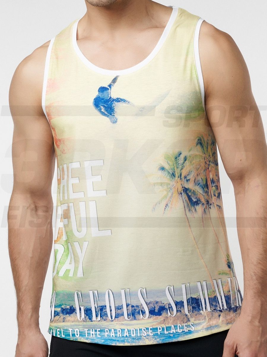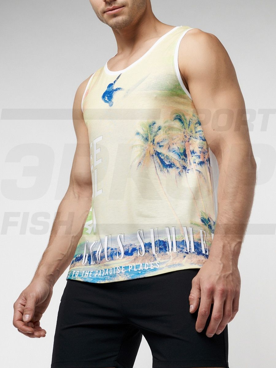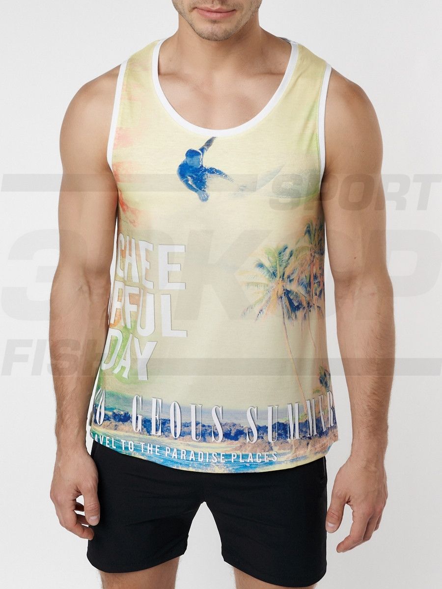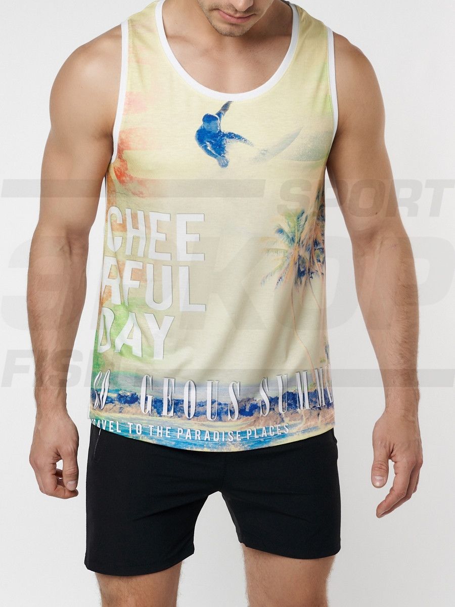 Молодежная майка без рукавов изготовлена из качественного материала. Материал мягок, обладает хорошей прочностью, износостойкостью. Хорошо проводит воздух и впитывает влагу. Прямого кроя с круглой горловиной. Края изделия обработаны. Модель украшена печатным принтом с лицевой стороны. Майка идеальна для занятий спортом, а также для прогулок и пляжного отдыха.